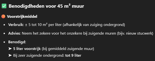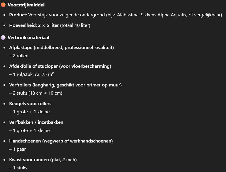 We kunnen AI zo instellen dat, zodra jij invult hoeveel vierkante meter je gaat stuken, hij direct berekent hoeveel voorstrijk, rotband en andere materialen je nodig hebt.