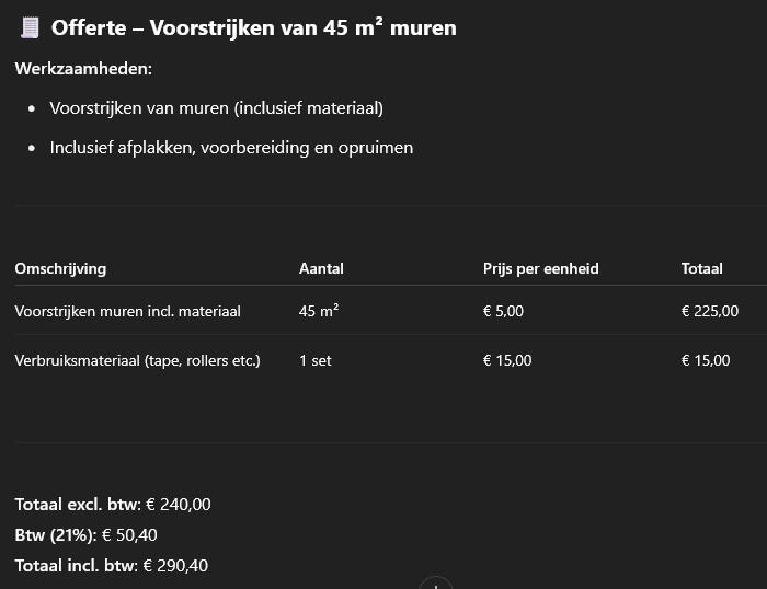We kunnen AI zo instellen dat, zodra jij invult hoeveel vierkante meter je gaat stuken, hij direct berekent hoeveel voorstrijk, rotband en andere materialen je nodig hebt.